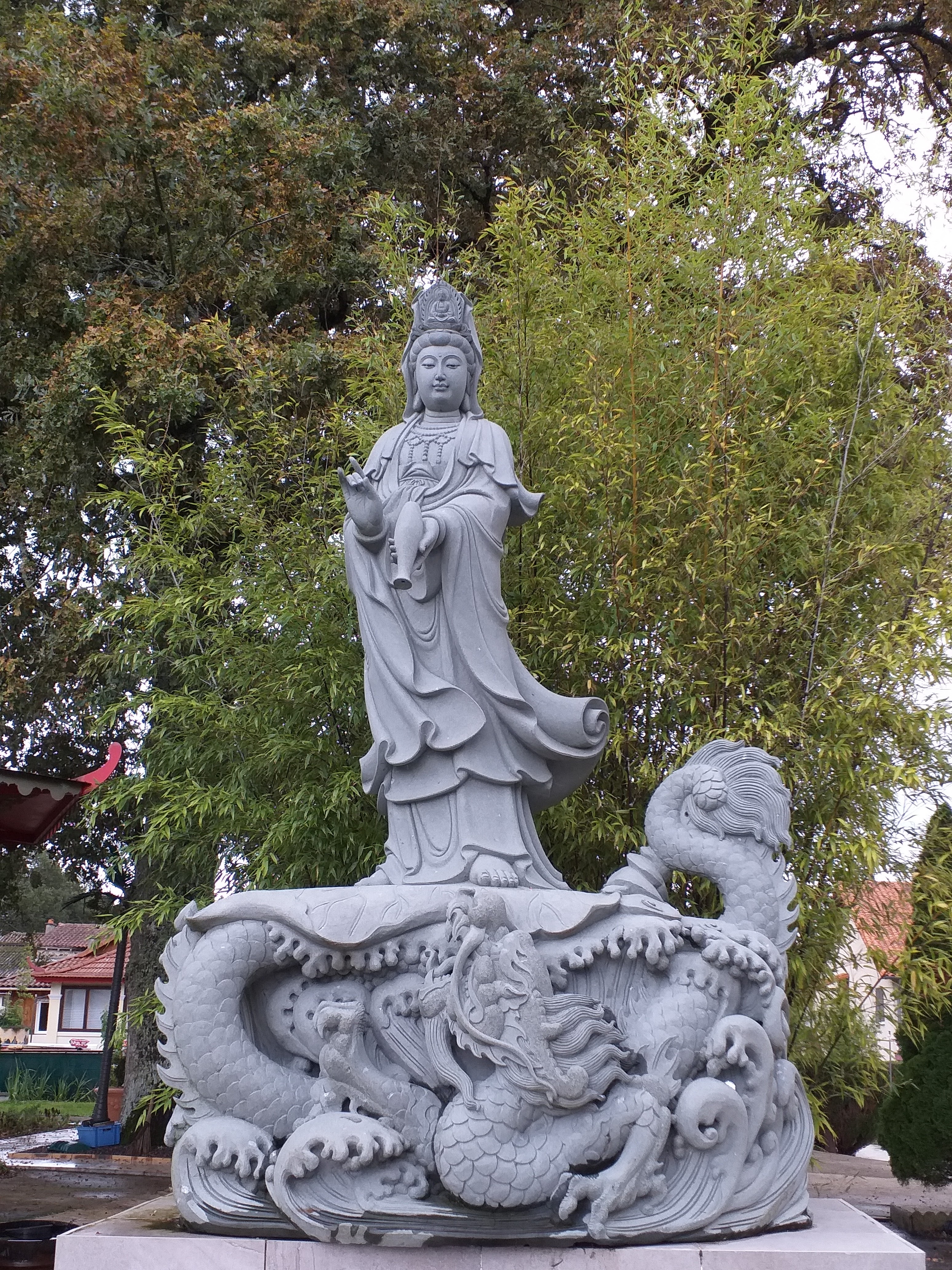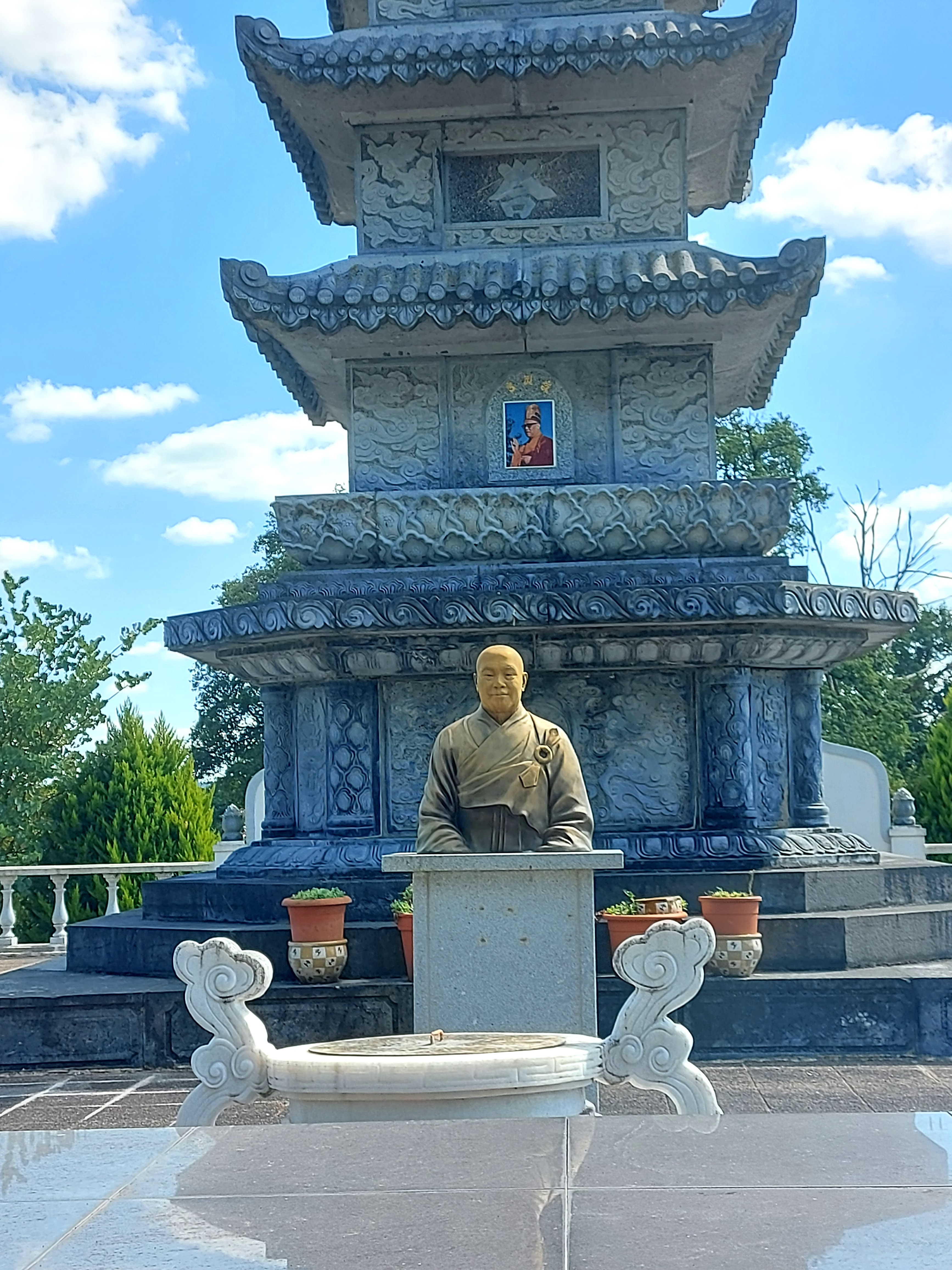 Posté le 16/09/2019 à 05:52" Quelle surprise de tomber sur ce monastère en pleine campagne ! Des religieuses vietnamiennes très accueillantes qui nous ont prêté des parapluies pour nous protéger de la pluie ! Il est intéressant de noter que l'anglais est plus parlé que le français, ce qui a également été une agréable surprise. On nous a proposé une rencontre avec le maître mais nous pensions que nous serions imposants en tant que passants. Un joli site à visiter avec ce qui semble être assez influencé par les statues chinoises. Merci aux gens gentils 🙏🙏🙏 "