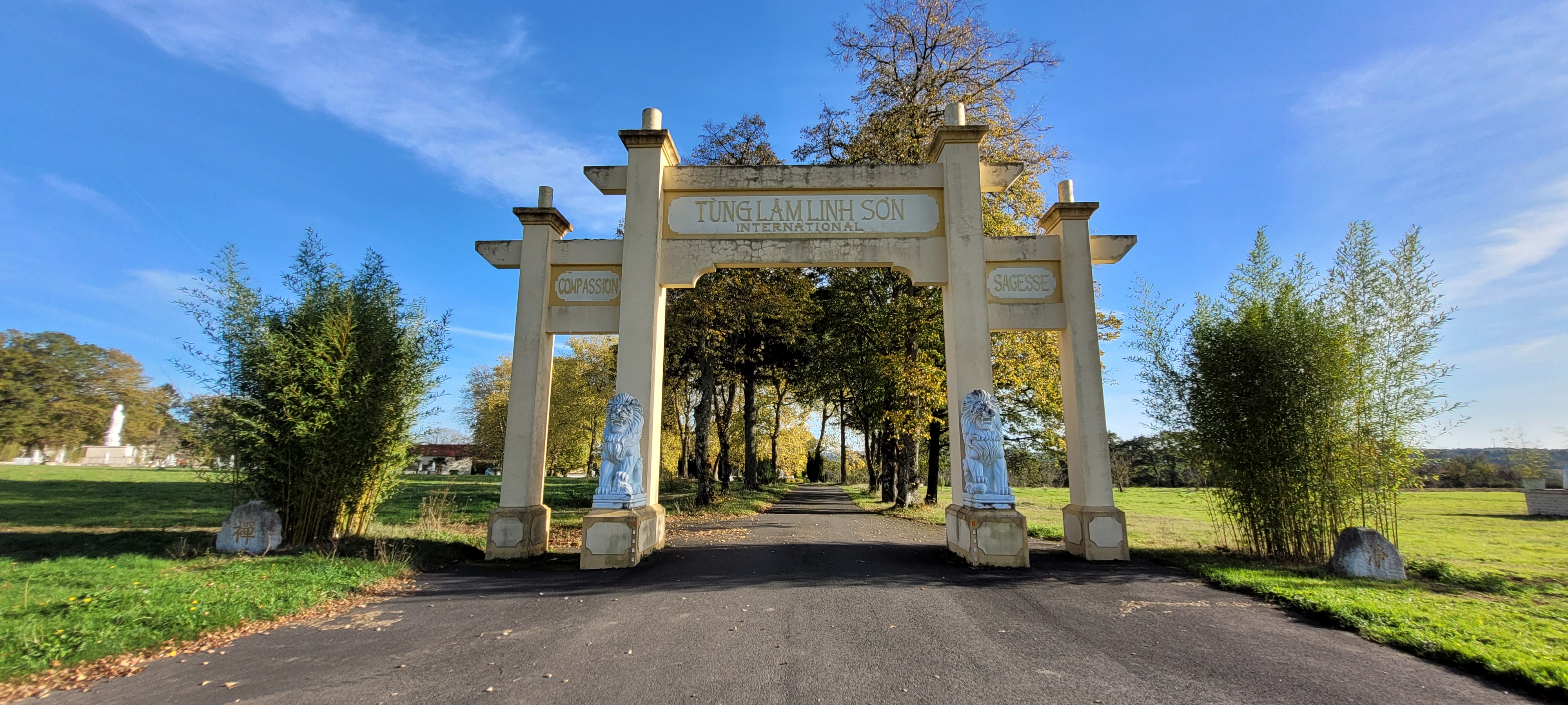 Posté le 20/10/2021 à 06:59"Un lieu empreint de spiritualité, à découvrir, quelle que soit sa place dans l'échelle des croyances. Ce n'est pas un parc touristique, il faut respecter la tranquillité des lieux, et pourtant les découvrir réserve d'heureuses surprises pour une personne du cru comme moi. Dans le Nord de cette région de Nouvelle Aquitaine, il y a peu d'occasion d'approcher un Monastère Bouddhique. A chaque étape de la visite, j'ai trouvé qu'il se dégageait une grande joie des décors sculptés, la signalétique est efficiente, elle interroge et stimule la curiosité. Le site internet répond à de nombreuses questions et invite à explorer plus avant cette doctrine. Visiter ce 12 octobre 2021 vers 13heure, je ai rencontré personne, à part deux touristes comme moi, surpris par ce lieu extravagant et pourtant plein de quiétude. Merci aux propriétaires d'offrir culture et sérénité en ce lieu ouvert à tous."